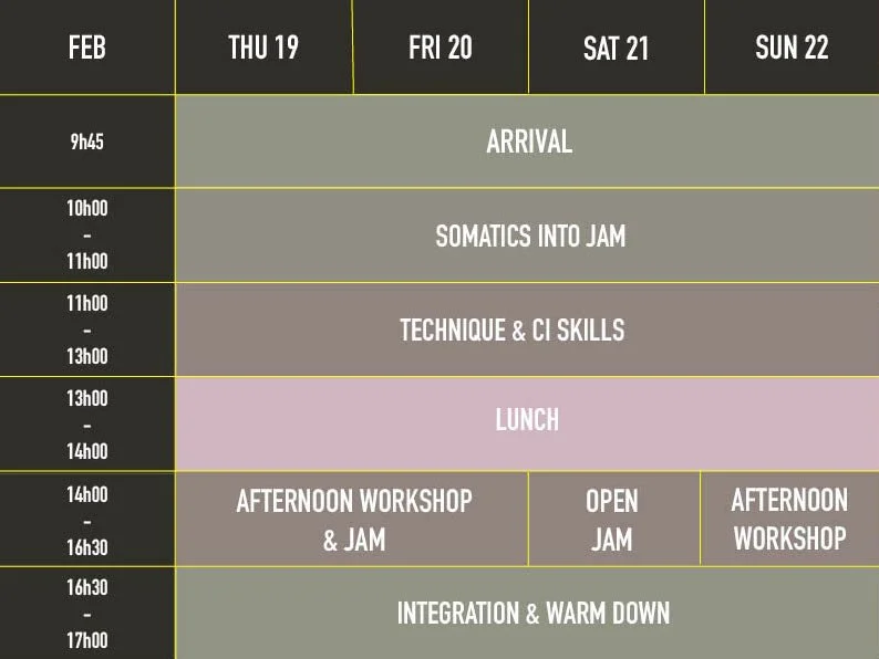 We will build our connect to earth, through the floor, with solo Somatics and simple but essential patterns that underpin the CI body.