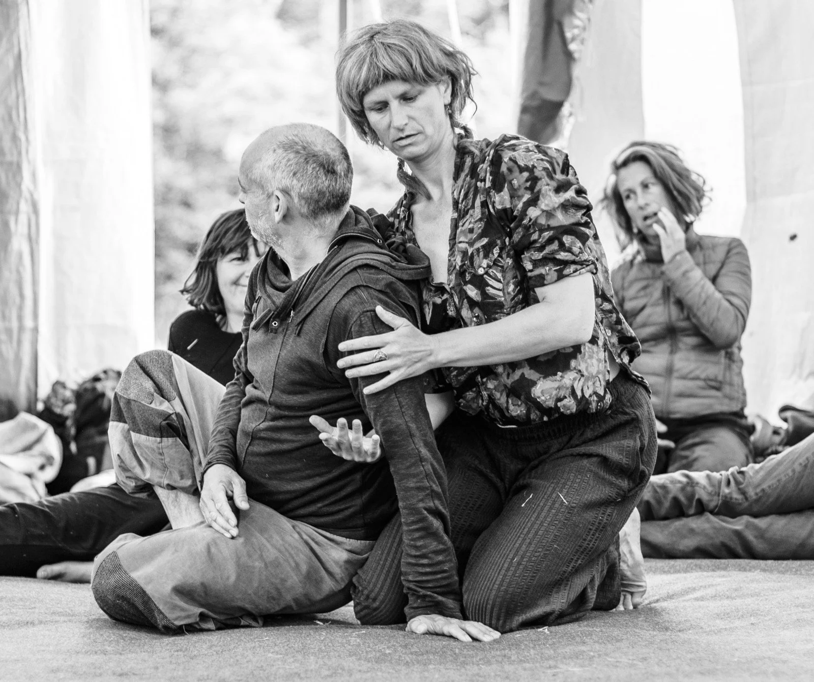 By giving and receiving weight, we investigate proximity, intimacy and distance, deepening skills in falling, spatial expansion, listening and consent through embodied empathy.
